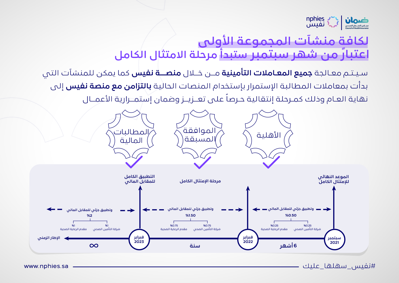 في إطار التحول الرقمي للقطاع الصحي في المملكة العربية السعودية و تحقيقًا لإحدى أهداف رؤية المملكة ٢٠٣٠ ، يقوم المجلس بالعمل على منصة نفيس بالتعاون مع المركز الوطني للمعلومات الصحية، و هي منصة تعنى بتسهيل تبادل المعلومات . الصحية للمرضى و مشاركة البيانات المالية و الإدارية والتي ستوفر الرؤية و الشفافية لجميع المستفيدين